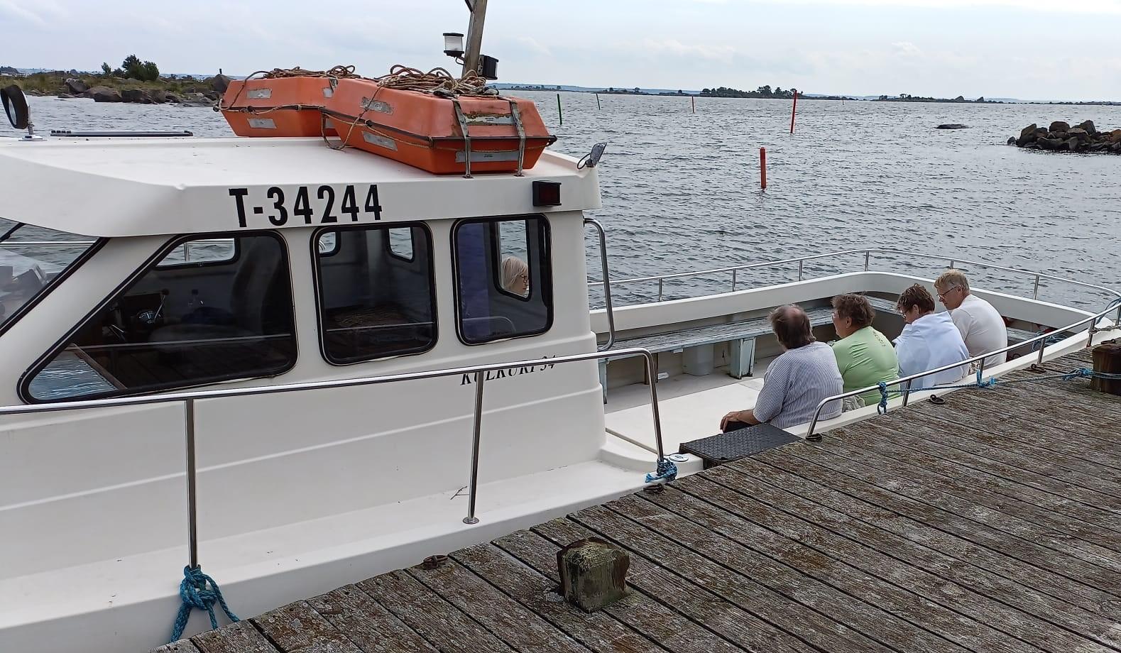 Maanantaina 4. elokuuta 2025 oli sellainen aamupäivä, joka jää mieleen. Krookan satamassa sade piiskasi vaakasuorassa ja merituuli puhalsi. Silti tunnelma oli odottava ja iloinen. Sade loppui juuri, kun oli aika lähteä veneretkelle. Veneen keulassa seisoi Raimo Stenroos — kokenut kapteeni, jonka kädet olivat tottuneet ohjaamaan venettä niin myrskyssä kuin tyynessäkin. Hänen johdollaan lähdimme matkaan, vaikka harva olisi uskonut, että päivästä tulisi vielä aurinkoinen.